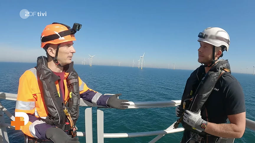 Vierzehn Tage lang ist das Ørsted Team auf dem Wartungsschiff "Windea Leibniz" in der stürmischen Nordsee unterwegs, um bei Wind und Wetter die Offshore-Windparks instand zu halten.